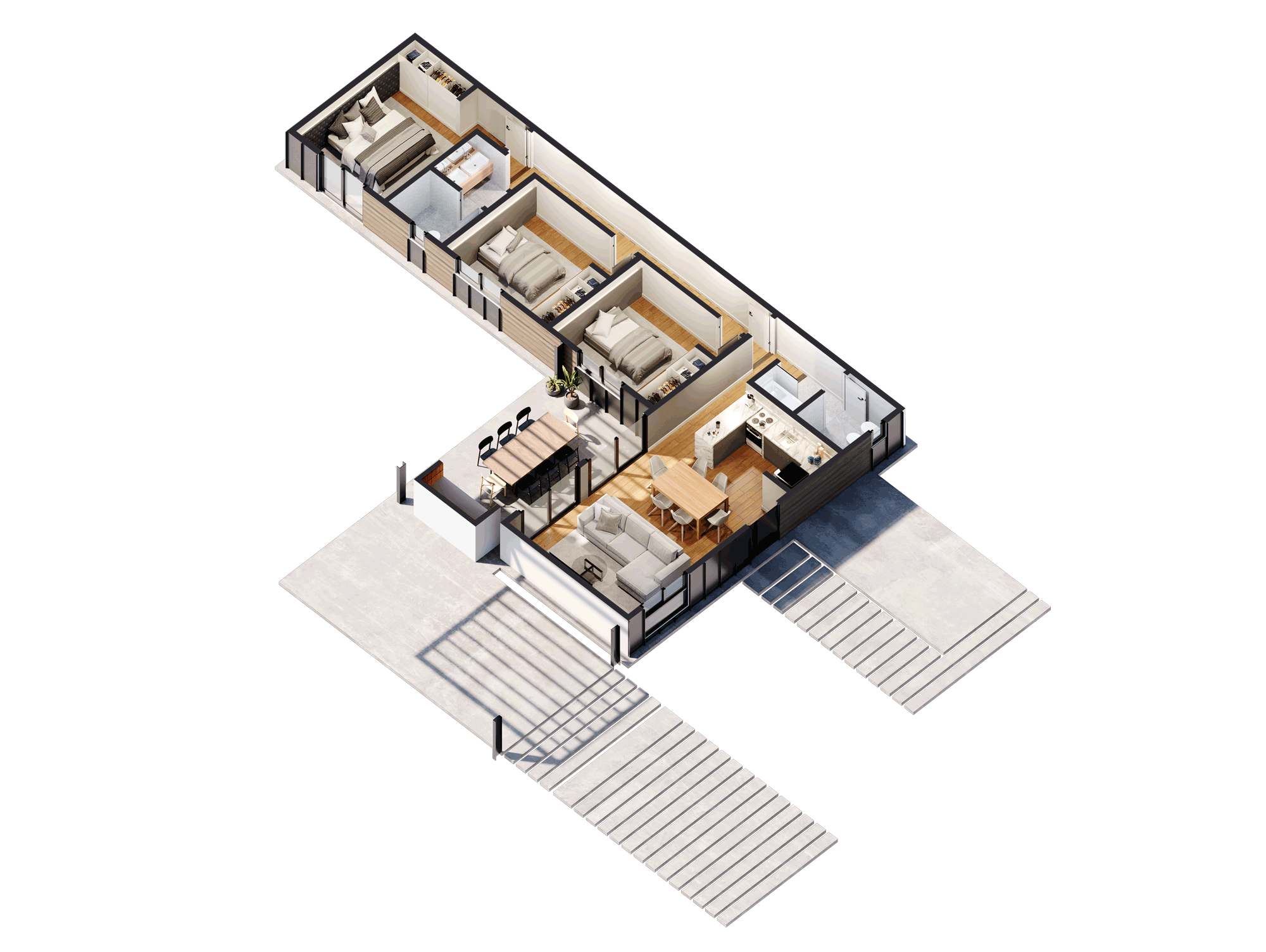 La Aconcagua de 2 dormitorios ocupa en tu terreno 9,30 m. de frente x 11,30 m. de fondo.